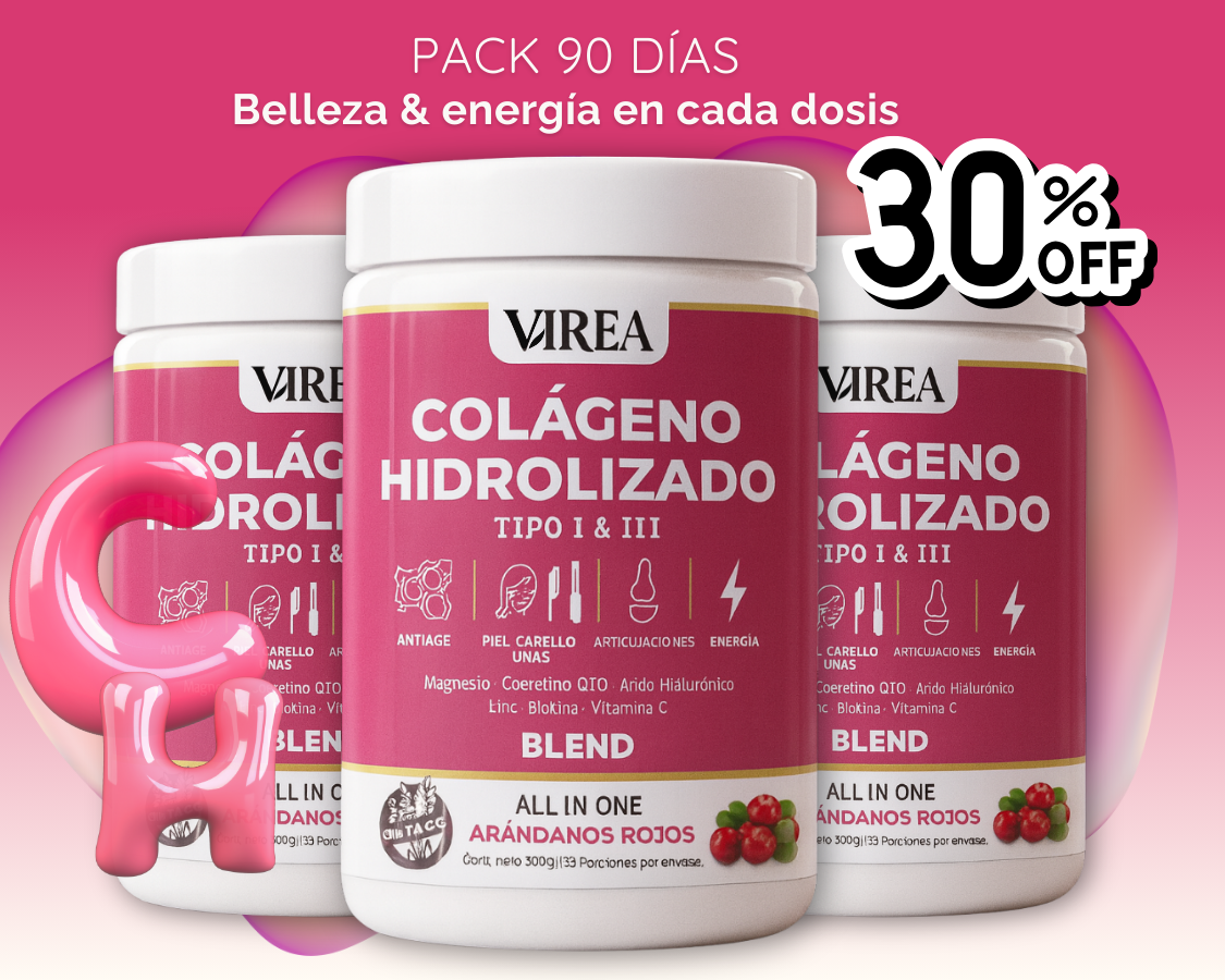 Cada pote de Colágeno Hidrolizado Virea Tipo I & III contiene 300 gramos, lo que equivale a 30 porciones.